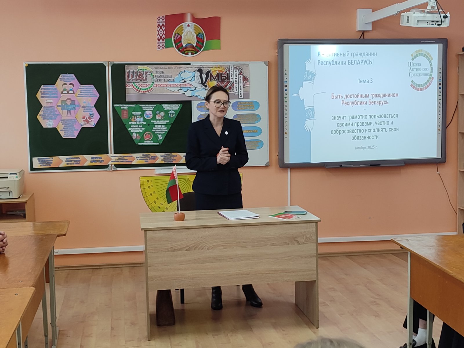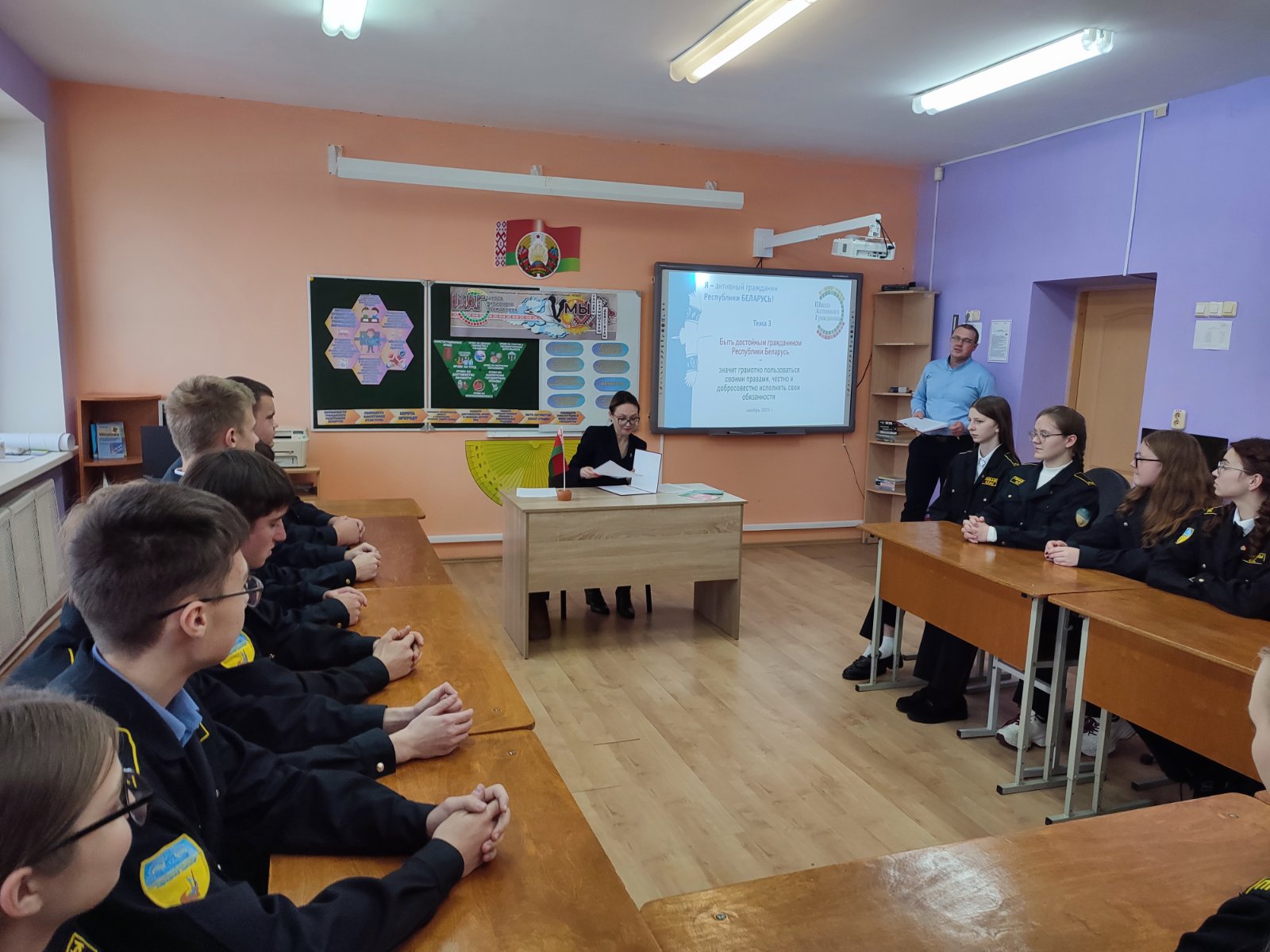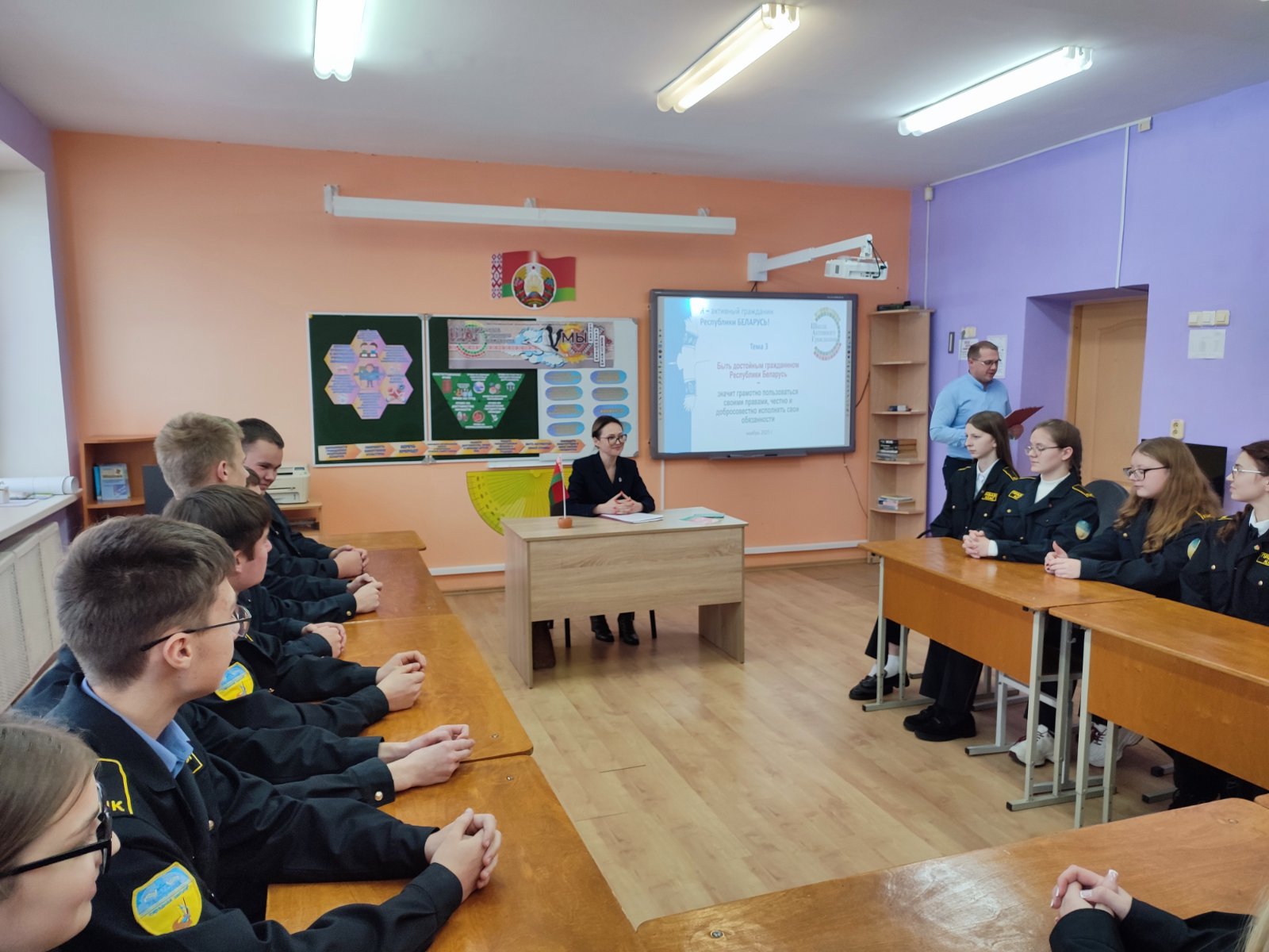27 ноября 2025 г. в ГУО «Кольчунская средняя школа» состоялась тематическая встреча «Быть достойным гражданином Республики Беларусь – значит грамотно пользоваться своими правами, честно и добросовестно исполнять свои обязанности» в рамках проекта «Школа активного гражданина», которая была направлена на воспитание активной гражданской позиции, понимания значимости закона и ответственности каждого за будущее страны.