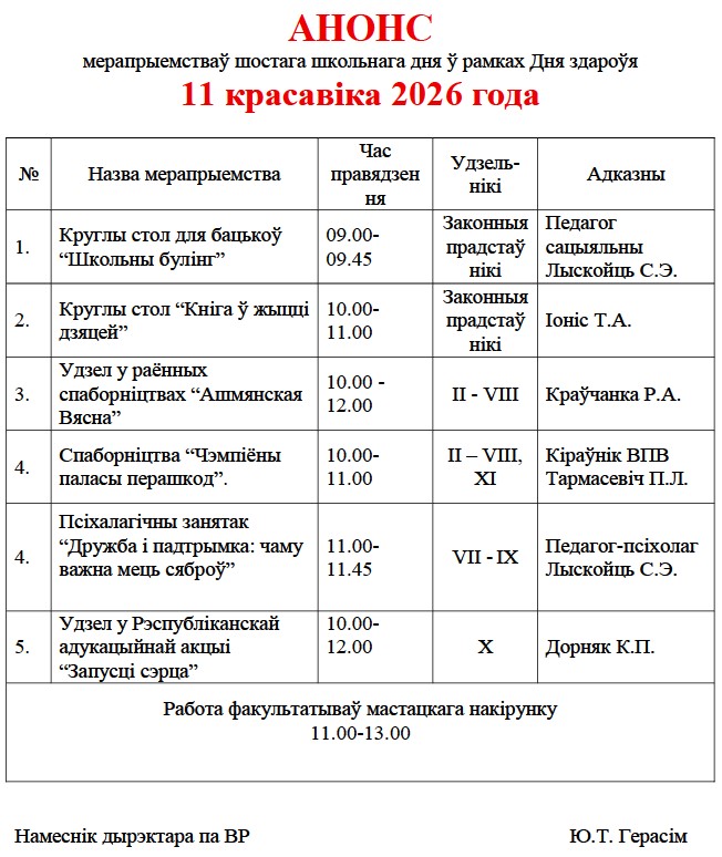 Вас запрашае субота!